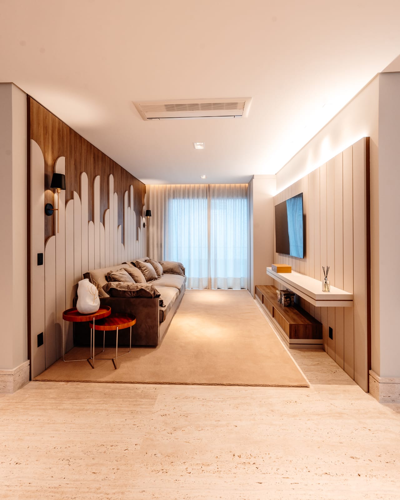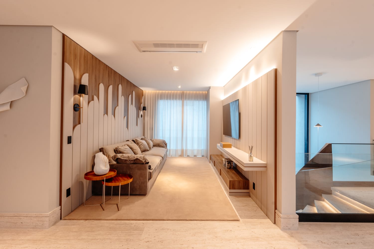 • Living com pé-direito duplo e muita luz natural